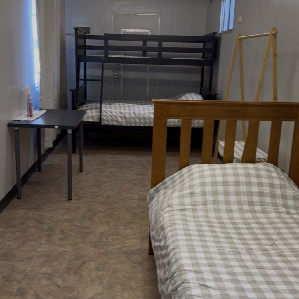 We have a cute little bunk house with access to a Kitchen, Shower and Toilet.